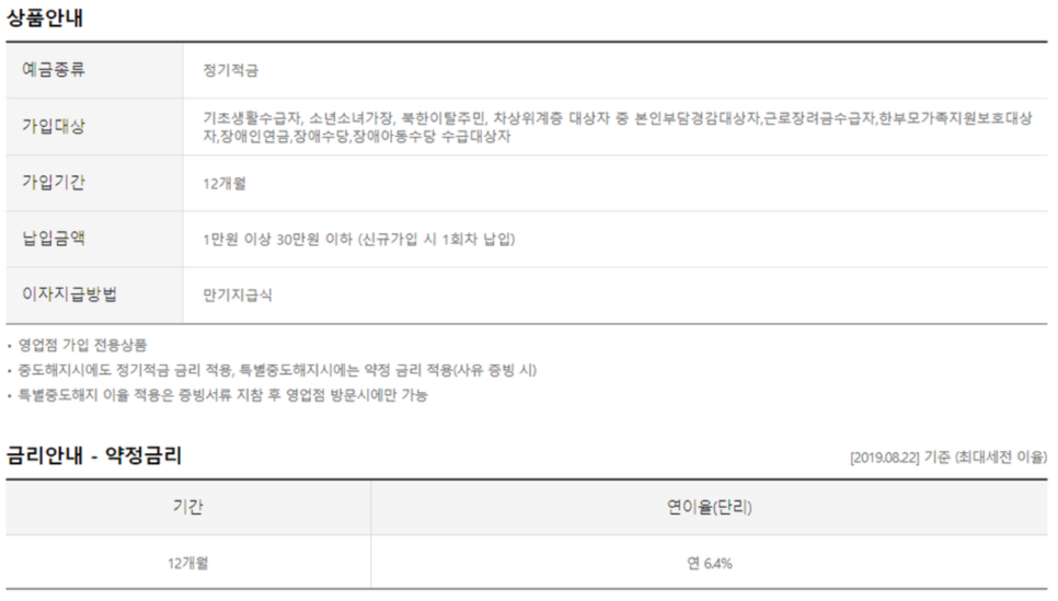 2019년 근로장려금 수급자 가입가능한 적금 추천해드립니다.